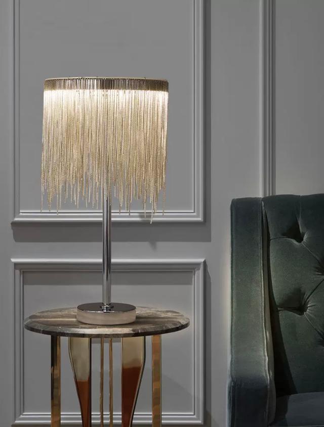 Настольная лампа с серебристым абажуром от Lampastore