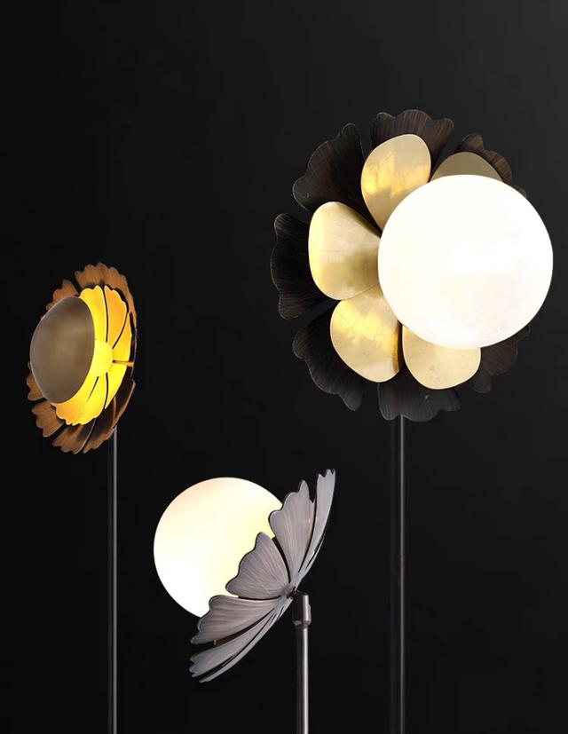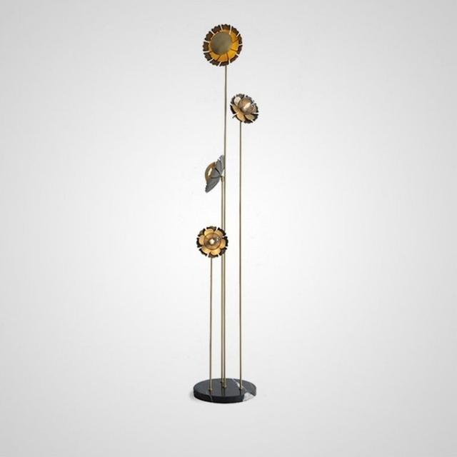 Торшер с элементами лепестков на четырех опорных штангах