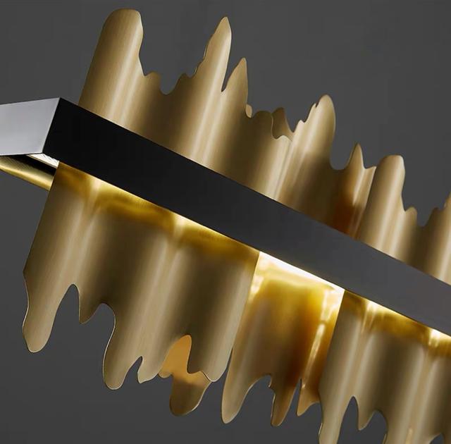 Светодиодный реечный светильник на струнном подвесе с латунными изогнутыми рассеивателями оригинальной формы. Обращайтесь за детальным подбором и консультацией