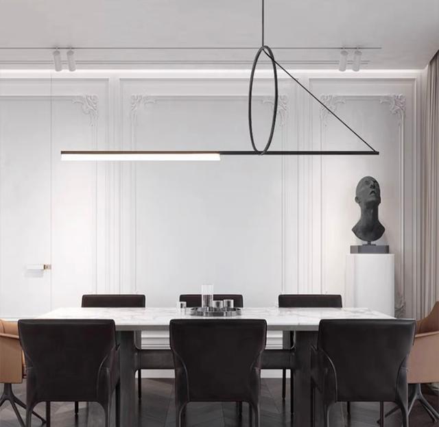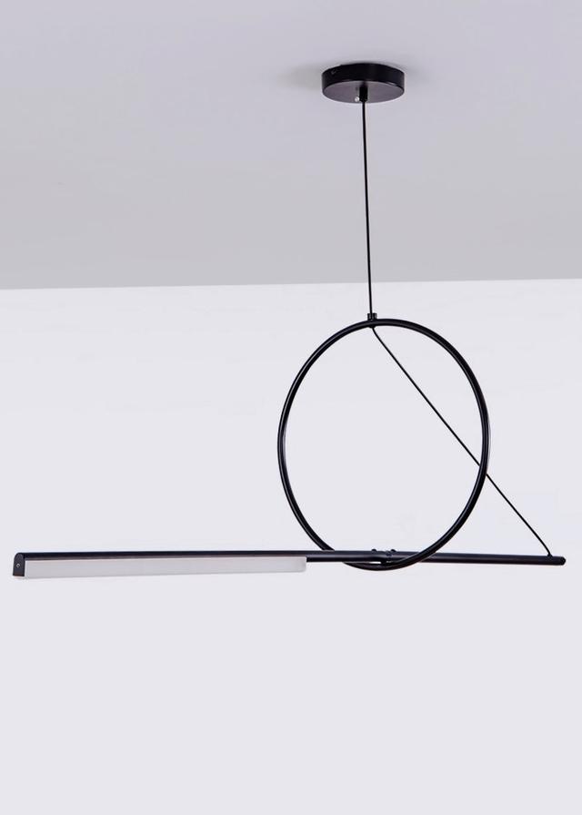 Светодиодный светильник в виде горизонтального стержня на оригинальном подвесе