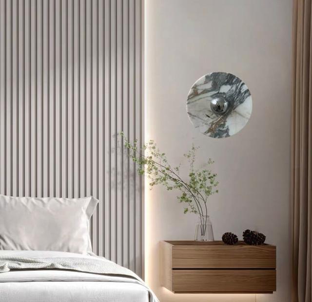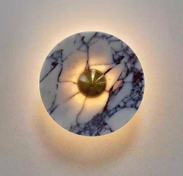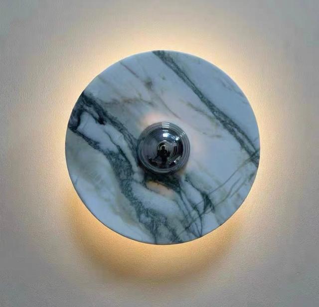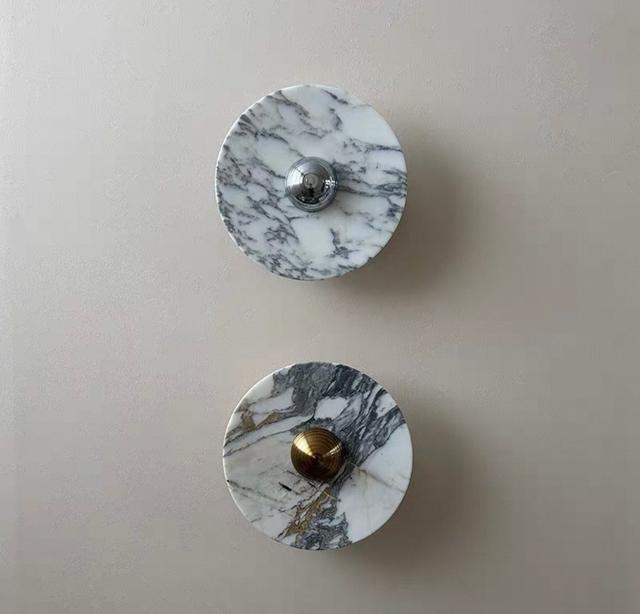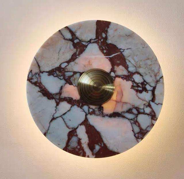 Серия настенных светодиодных светильников с дисковидными рассеивателями из цветного мрамора с контрастной текстурой. Обращайтесь за детальным подбором и консультацией
