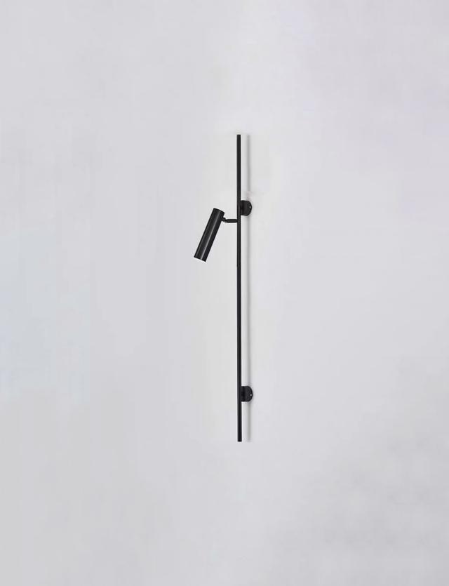 Настенный светильник с цилиндрическим поворотным спотом на вертикальной стойке из латуни