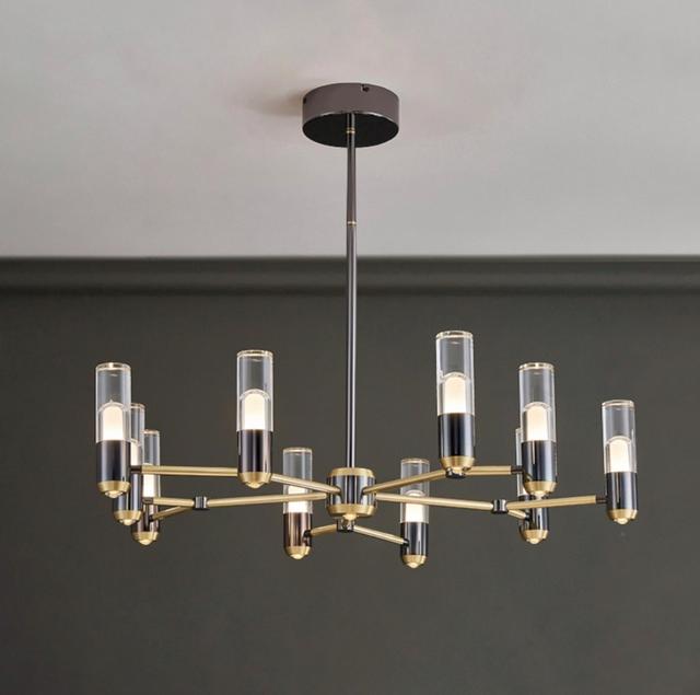 Светодиодная люстра с поворотными рассеивателями цилиндрической формы с точечными линзированными источниками. Обращайтесь за детальным подбором и консультацией