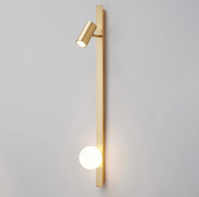 Настенный светильник с шарообразным плафоном из стекла и поворотным спотом на вытянутом прямоугольном корпусе. Обращайтесь за детальным подбором и консультацией