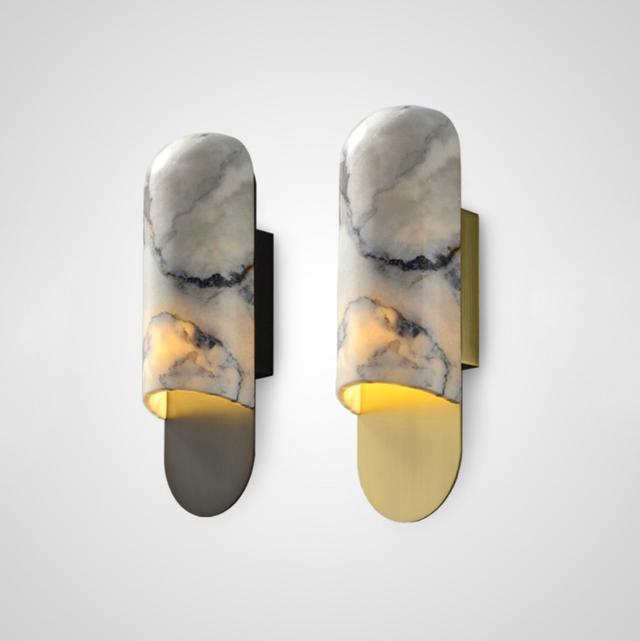 Серия настенных светильников с выгнутым округлым рассеивателем из натурального мрамора. Обращайтесь за детальным подбором и консультацией