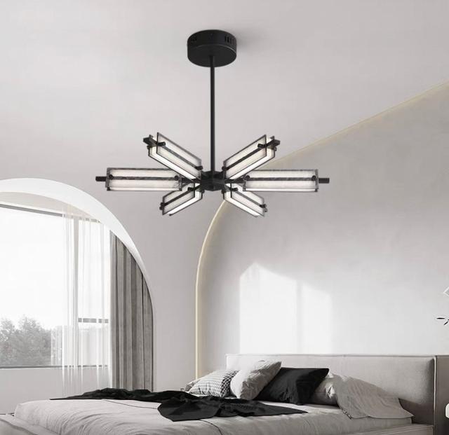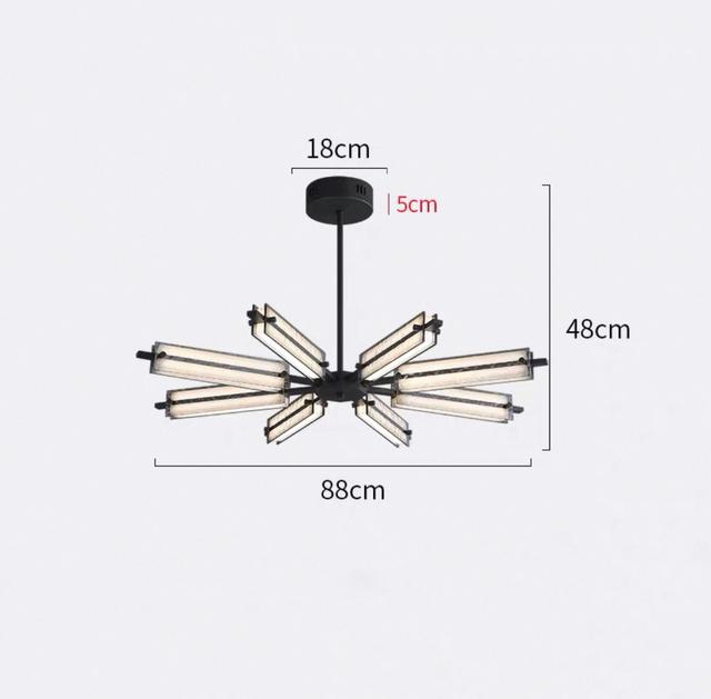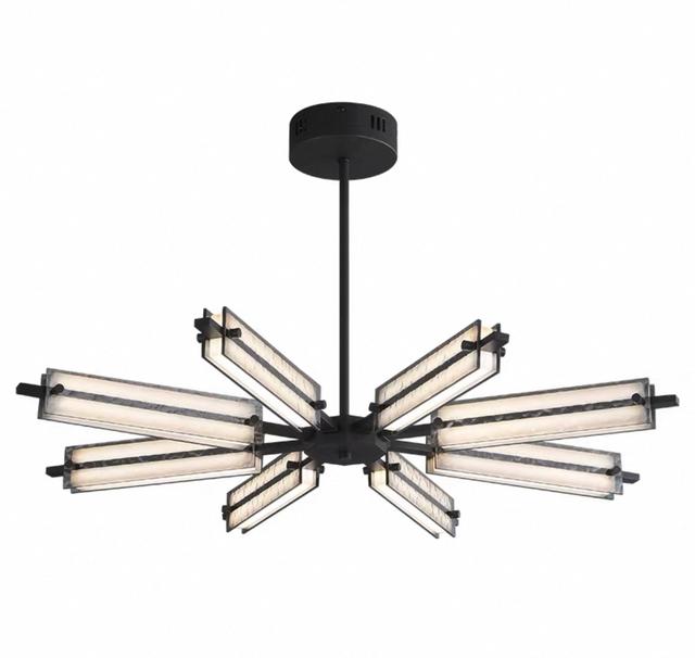 Серия светодиодных люстр на лучевом каркасе с прямоугольными рассеивателями из стекла с эффектом льда. Обращайтесь за детальным подбором и консультацией