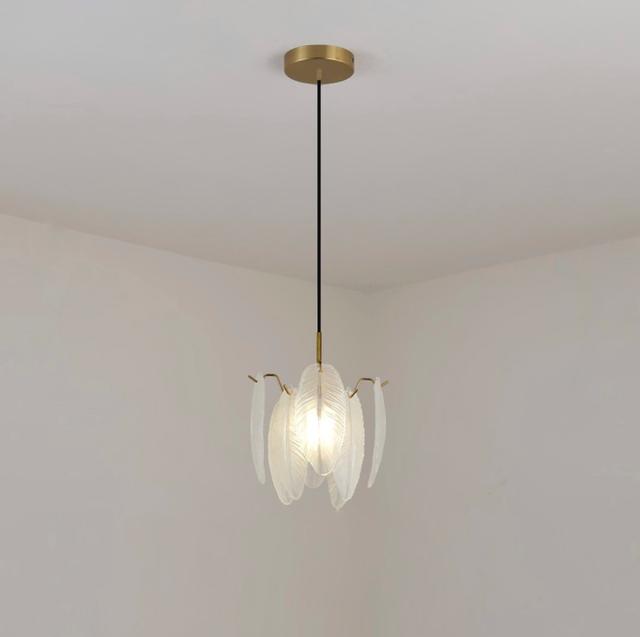 Подвесной светильник с абажуром в виде композиции из стеклянных перьев. Обращайтесь за детальным подбором и консультацией