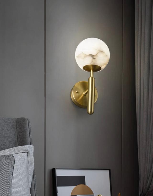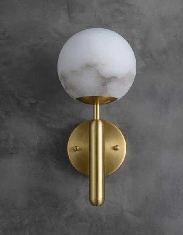 Настенный светильник с шарообразным плафоном из мрамора и металлическим креплением бронзового оттенка. Обращайтесь за детальным подбором и консультацией