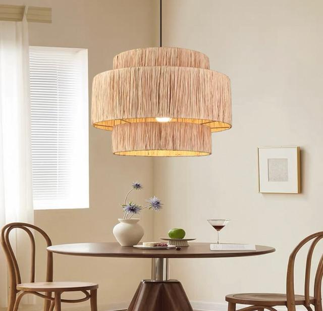 Подвесная люстра в восточном стиле с трёхъярусным абажуром из пальмы ротанг. Обращайтесь за детальным подбором и консультацией