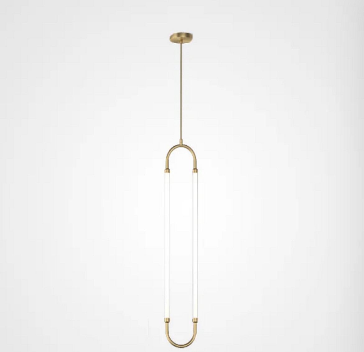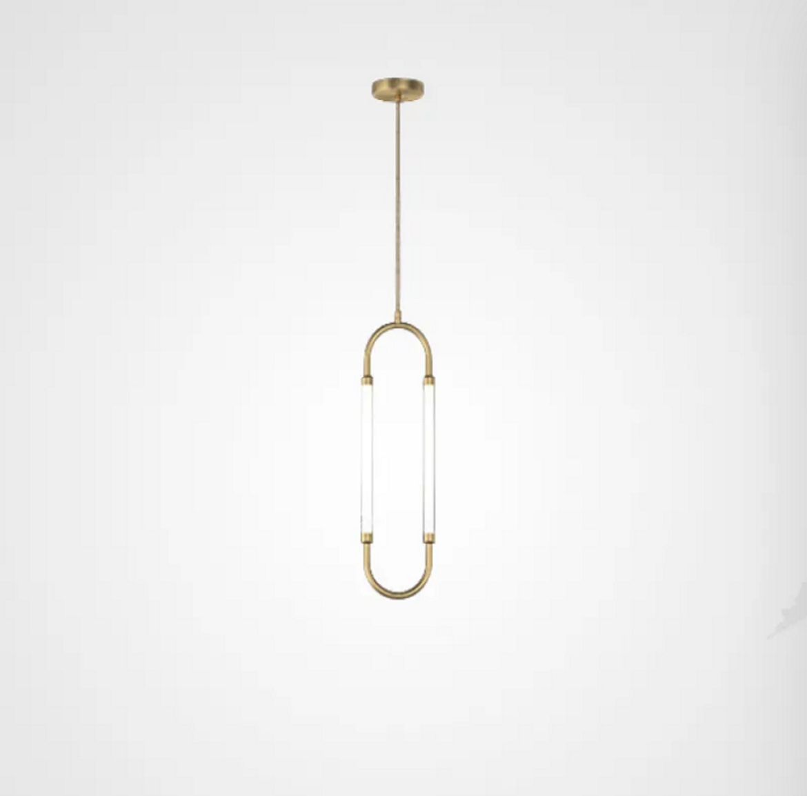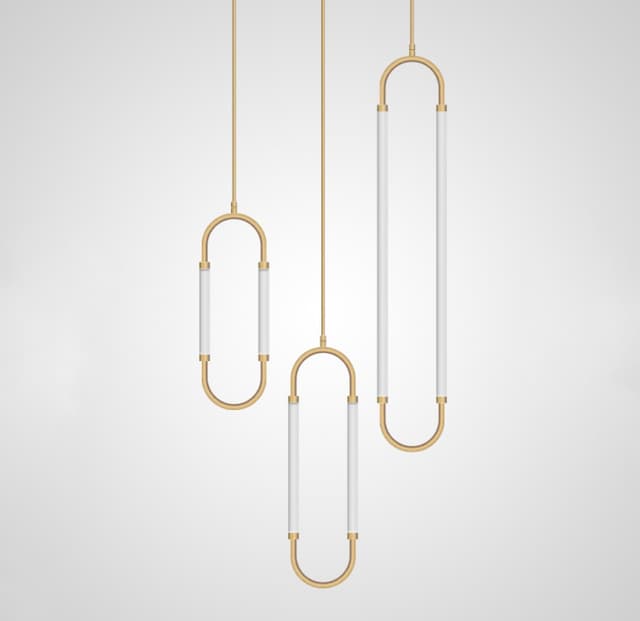 Серия светодиодных подвесных светильников от Lampastore с двумя плафонами на закольцованном латунном корпусе. Обращайтесь за детальным подбором и консультацией