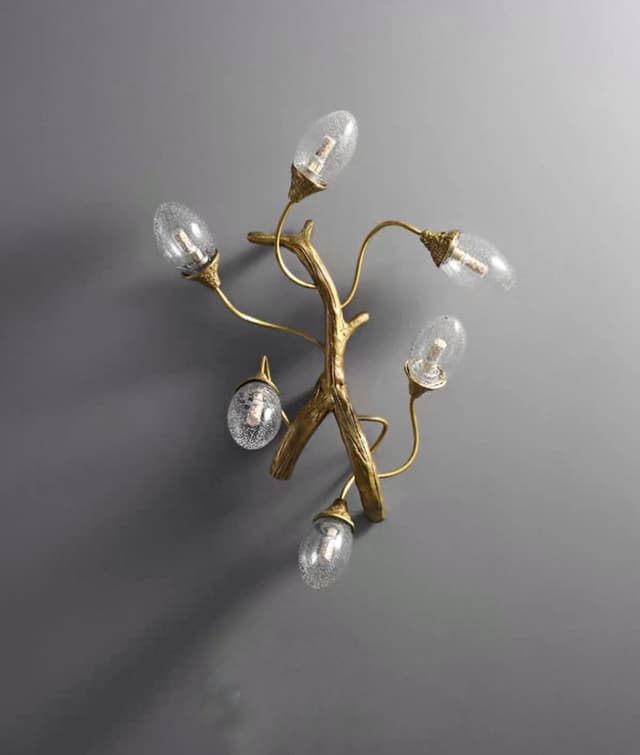 Настенный светильник от производителя Lampastore - с эллиптическими плафонами из стекла с эффектом воздушных пузырьков на металлическом каркасе, стилизованном под ветвь дерева . Серия состоит из кольцевой люстры, бра и длинного светильника. Обращайтесь за детальным подбором и консультацией