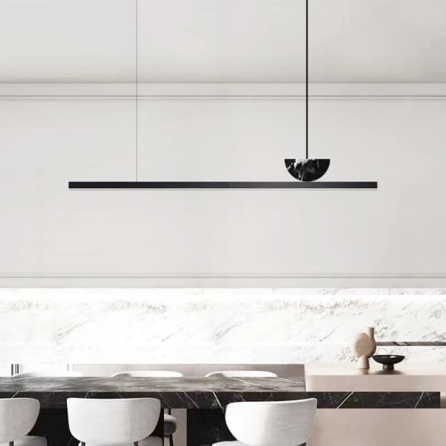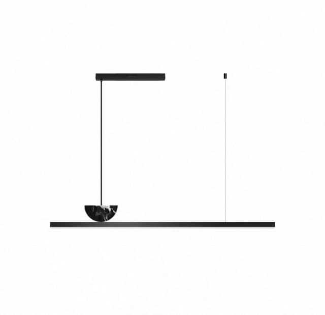 Реечный светодиодный светильник с мраморным декором в форме усеченного диска на черном прямоугольном корпусе