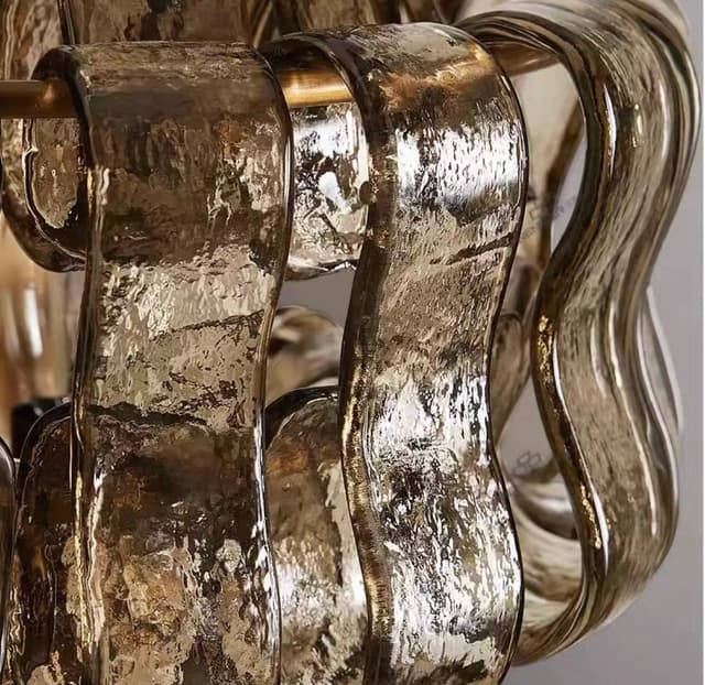 Серия потолочных люстр с абажуром из стеклянных подвесок в форме разомкнутых звеньев цепи