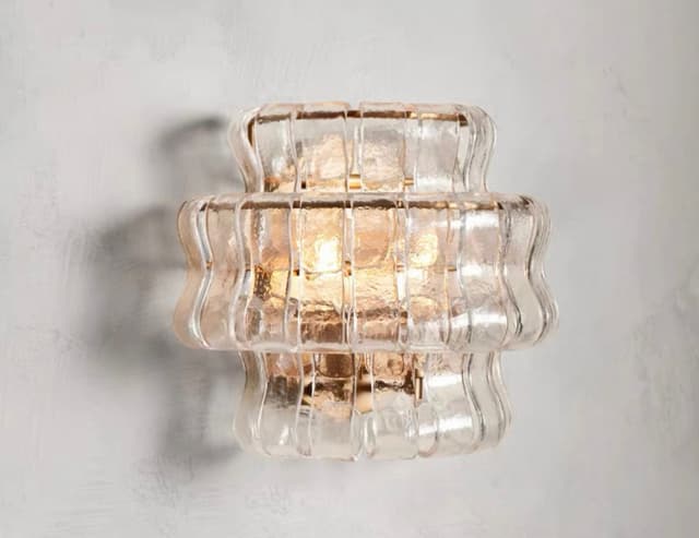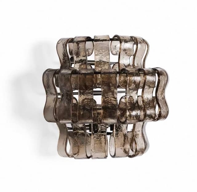 Серия настенных светильников с абажуром из стеклянных подвесок в форме разомкнутых звеньев цепи. Серия состоит из нескольких видов люстр и настенных светильников. Обращайтесь за детальным подбором и консультацией.