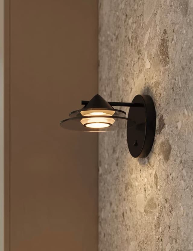 Настенный светильник конической формы с двумя дисками из дымчатого стекла