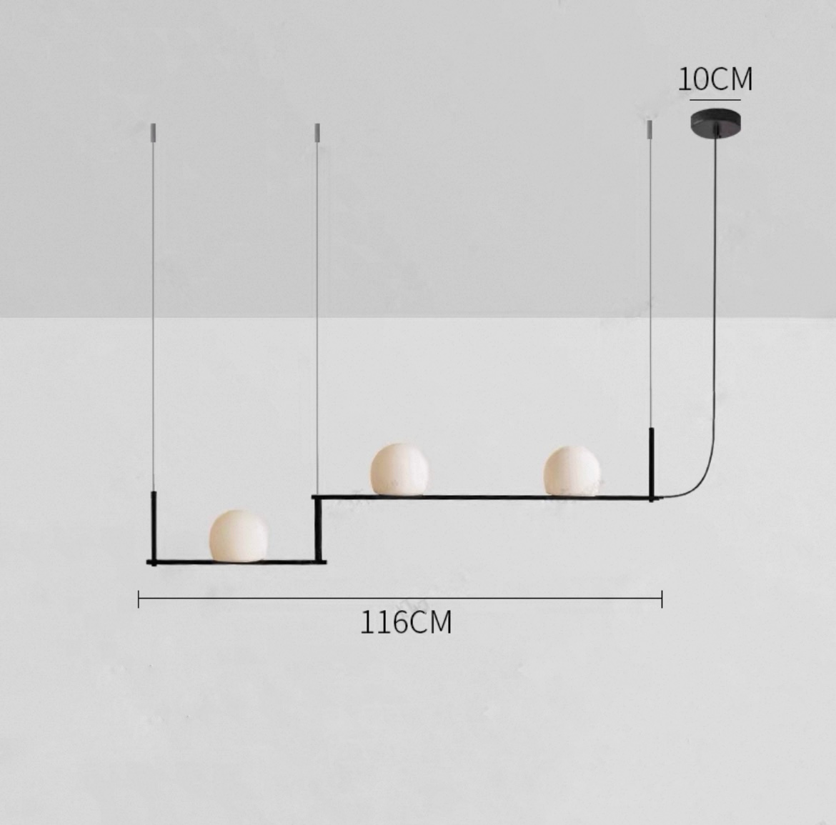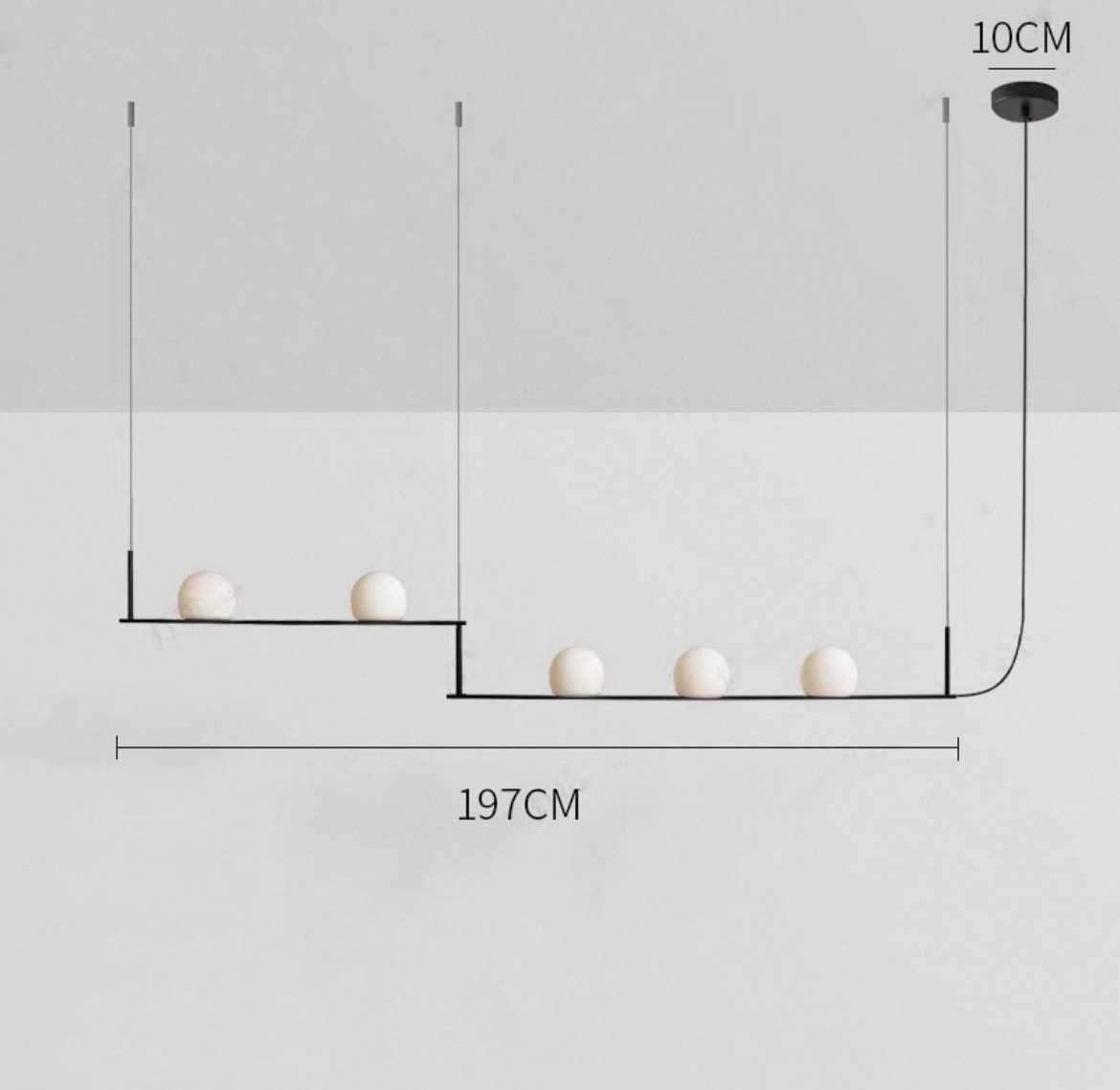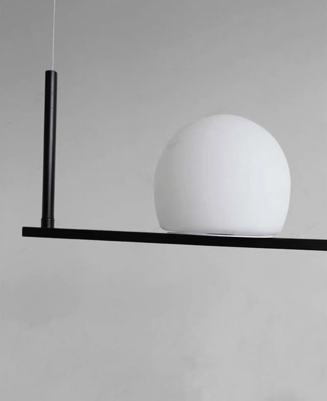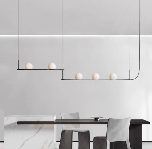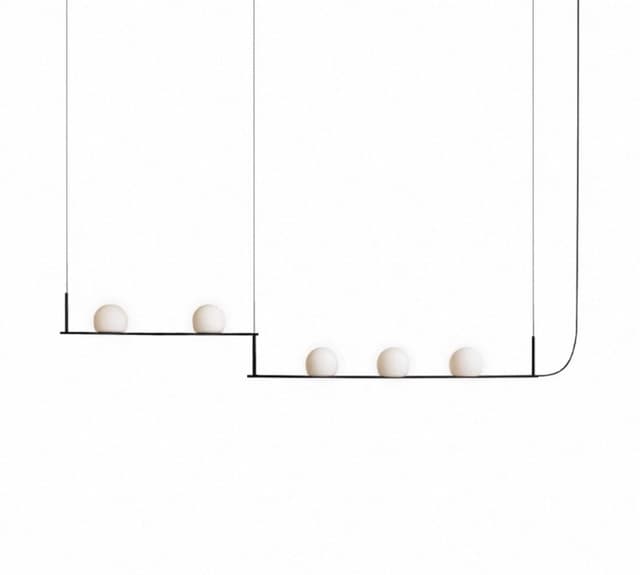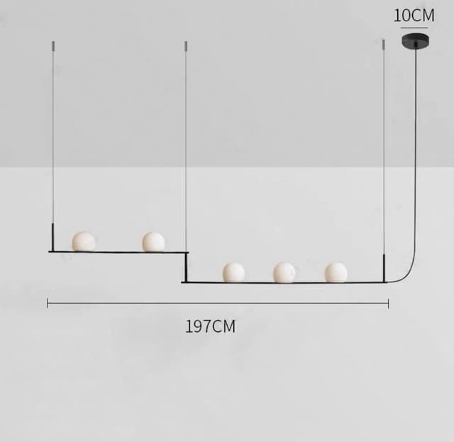 Реечный светильник с тремя и пятью шарообразными плафонами на разноуровневых подвижных рейках