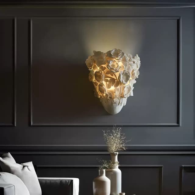 Современный полимер, искусно имитирующий гипс, дарит светильнику полупрозрачность, позволяя свету игриво проникать сквозь фактурные лепестки и бутоны. Эта волшебная игра света и тени превращает обыденное освещение в завораживающее зрелище. Этот светильник – идеальное дополнение для классических интерьеров и пространств, вдохновленных французским стилем. Его фактурная красота добавит изысканности и уюта в любую комнату.