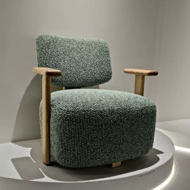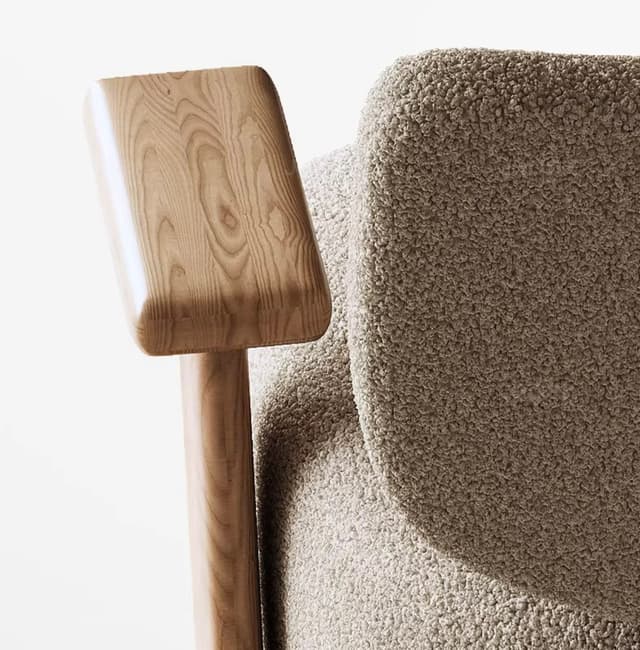 Дизайнерское кресло MILOS с изящными деревянными подлокотниками. Модель доступна к заказу в любой выбранной вами ткани. Обращайтесь за детальным подбором и консультацией.