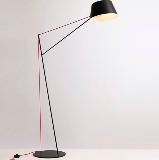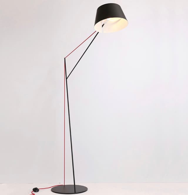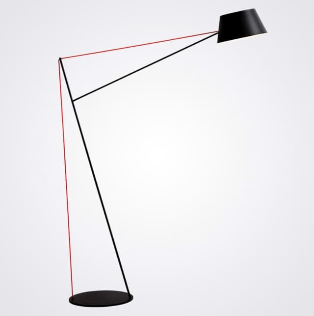 Изящный торшер с натяжным текстильным проводом, удерживающим конструкцию за счет растяжки, провод образует четкие углы и формы. Обращайтесь за детальным подбором и консультацией