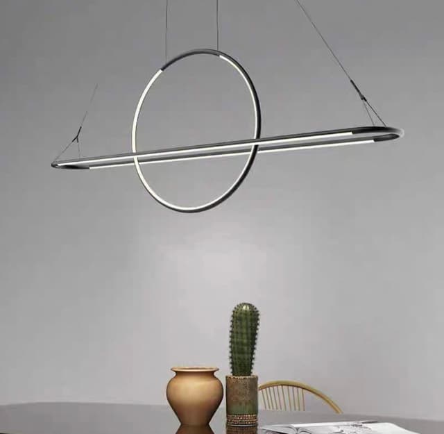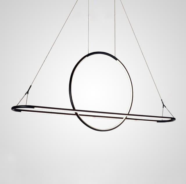Реечный светодиодный светильник в виде комбинации овальной рамы и кольцевого элемента на струнном подвесе с регулировкой высоты. Обращайтесь за детальным подбором и консультацией