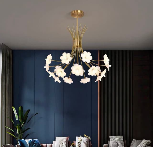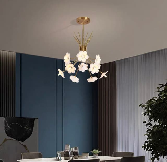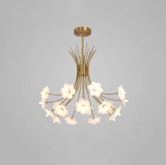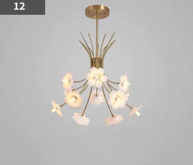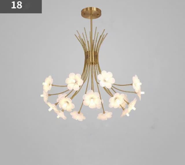 Серия дизайнерских люстр в виде изогнутых основанийс белыми плафонами в форме цветов. Обращайтесь за детальным подбором и консультацией
