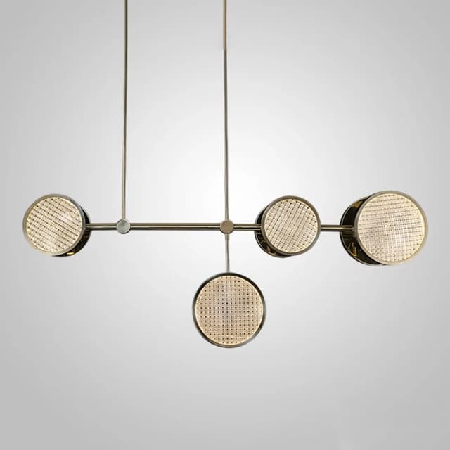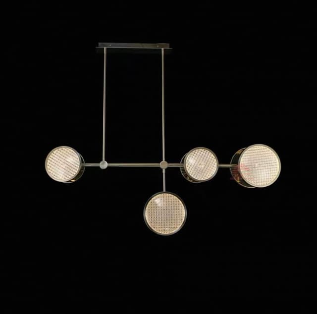 Серия светильников состоящая из люстры, подвесного светильника, настольного и реечного светильника. Светодиодный реечный светильник на стойках с дисковидными плафонами разного размера из фактурного стекла ручной работы и дополнительным направленными вниз источниками света. Обращайтесь за детальным подбором и консультацией
