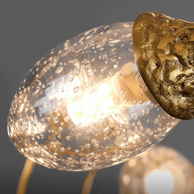 Люстра с эллиптическими плафонами из стекла с эффектом воздушных пузырьков на вытянутом металлическом каркасе, стилизованном под дерево. Обращайтесь за детальным подбором и консультацией