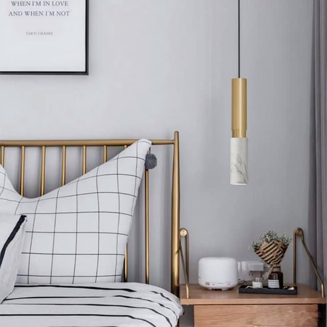 Подвесной светильник с двойным цилиндрический плафоном из металла и мрамора. Обращайтесь за детальным подбором и консультацией