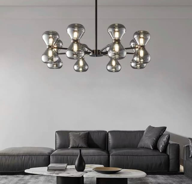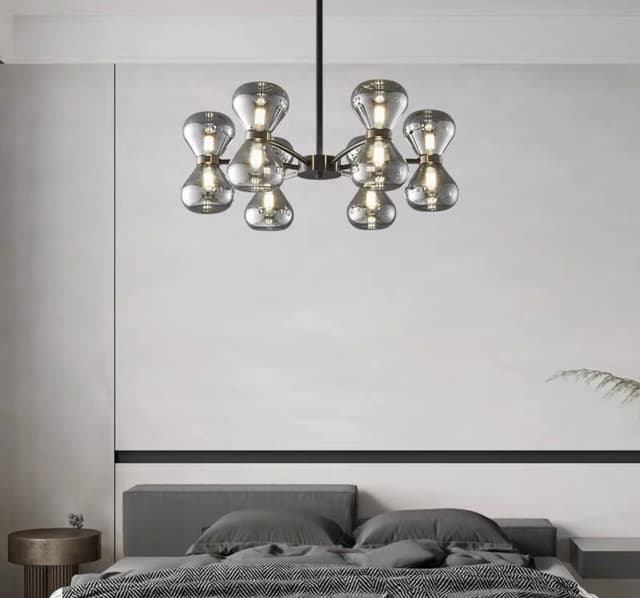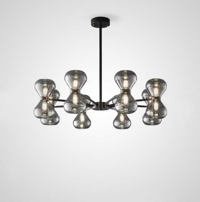 Серия светодиодных люстр с парными двунаправленными плафонами из дымчатого стекла на лучевом каркасе. Обращайтесь за детальным подбором и консультацией