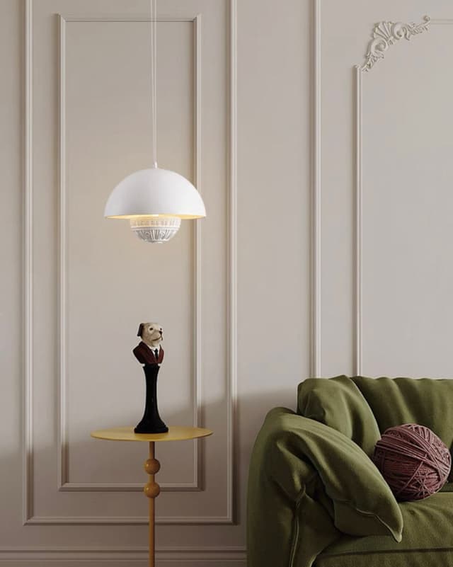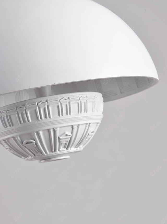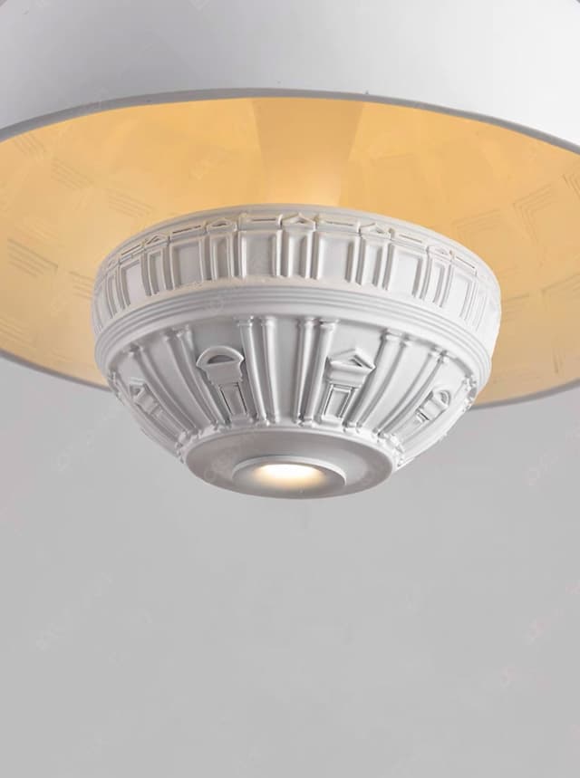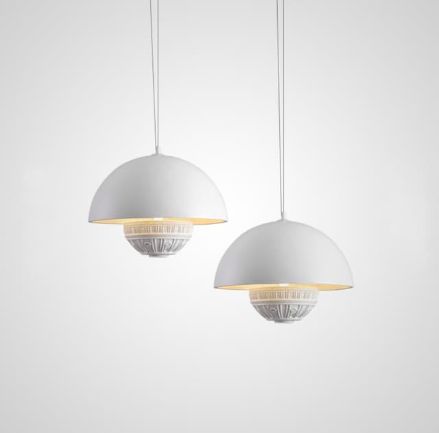 Светодиодный подвесной светильник в виде элемента с архитектурной лепниной под купольным абажуром и двумя источниками света