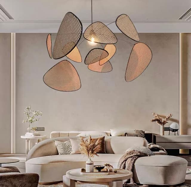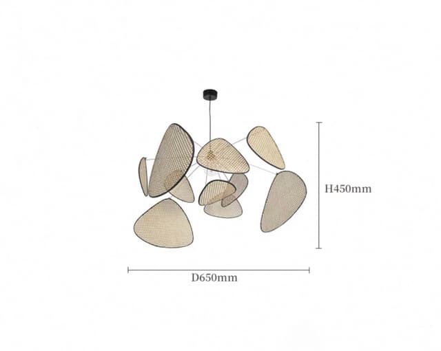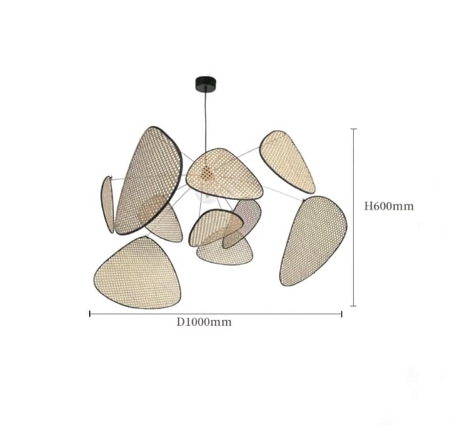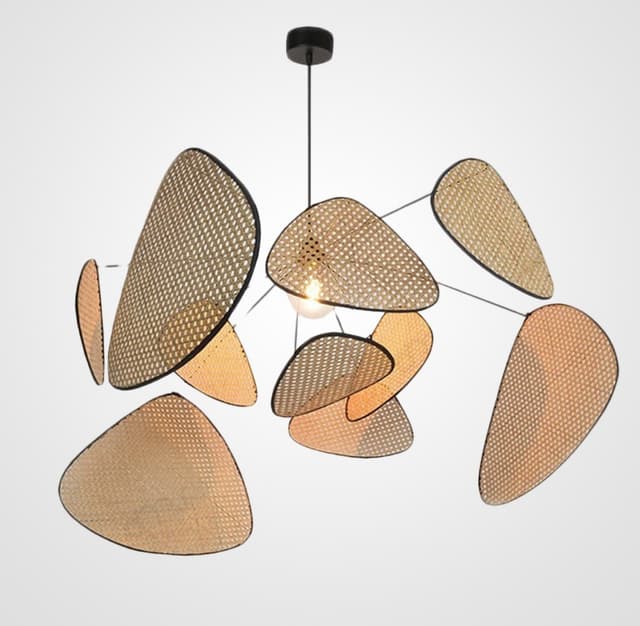Дизайнерская подвесная люстра на лучевом каркасе с треугольными рассеивателями из ротангового плетения. Серия состоит из основного освещения, торшера и бра. Обращайтесь за детальным подбором и консультацией