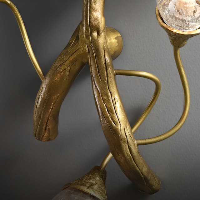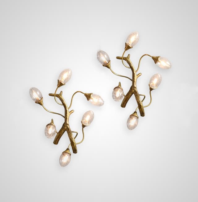 Настенный светильник от производителя Lampastore - с эллиптическими плафонами из стекла с эффектом воздушных пузырьков на металлическом каркасе, стилизованном под ветвь дерева . Серия состоит из кольцевой люстры, бра и длинного светильника. Обращайтесь за детальным подбором и консультацией