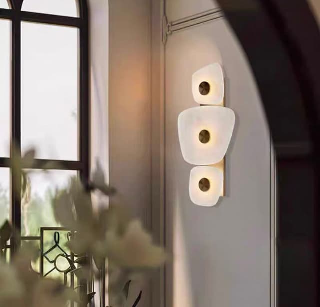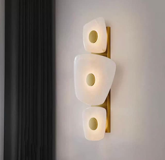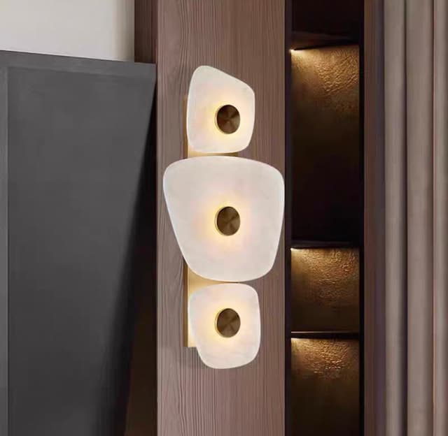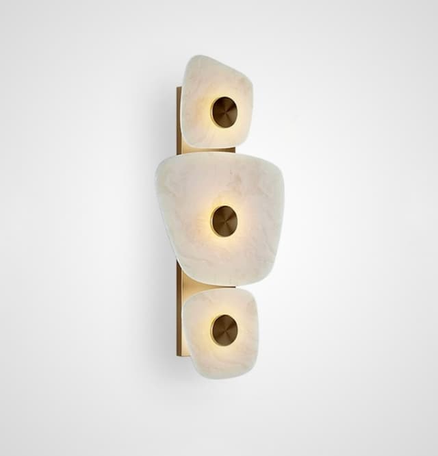 Светодиодный настенный светильник с рассеивателями неправильной формы из натурального испанского мрамора на латунном основании. Обращайтесь за детальным подбором и консультацией