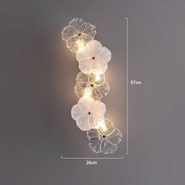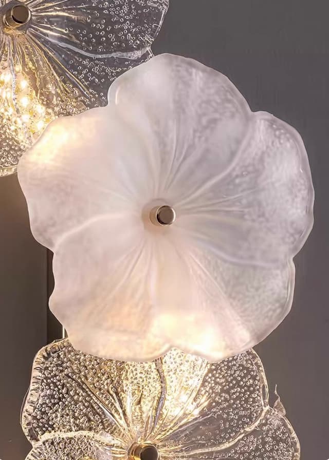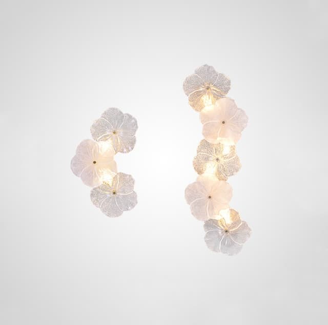 Нежная серия настенных светильников с цветочным декором из прозрачного и матового стекла ручной работы. Обращайтесь за детальным подбором и консультацией