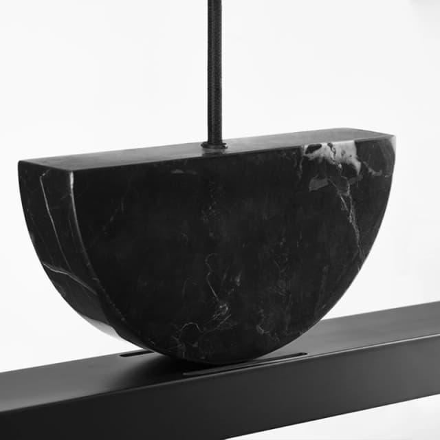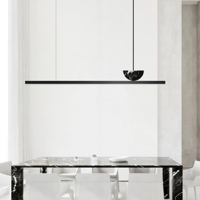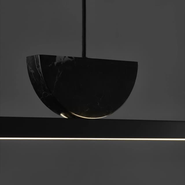 Реечный светодиодный светильник с мраморным декором в форме усеченного диска на черном прямоугольном корпусе