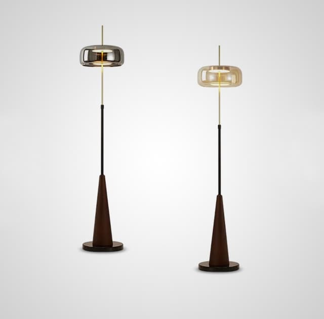 Серия напольных светодиодных светильников с шарообразным рассеивателем из тонированного стекла на конусовидном основании из мрамора и дерева, плафоны представлены в двух цветах янтарный и дымчато - серый. Обращайтесь за детальным подбором и консультацией