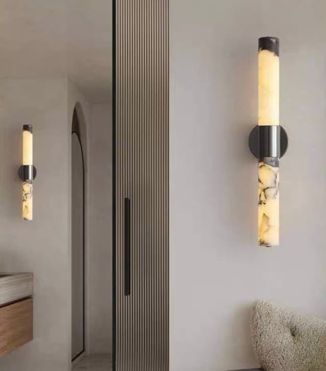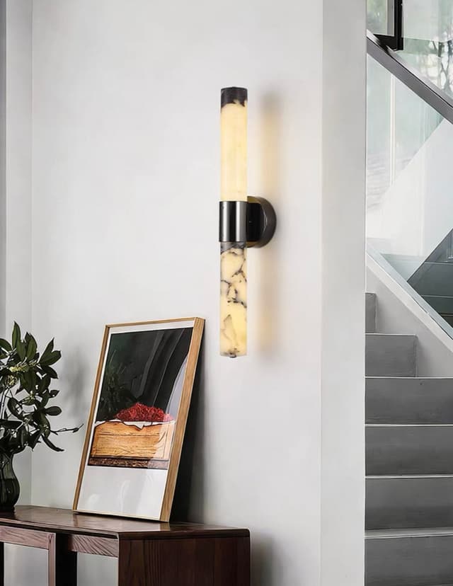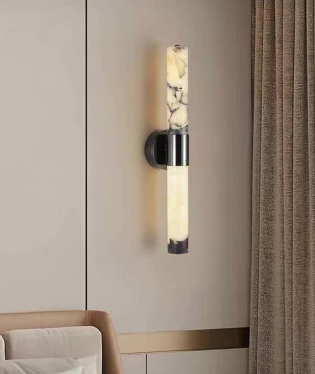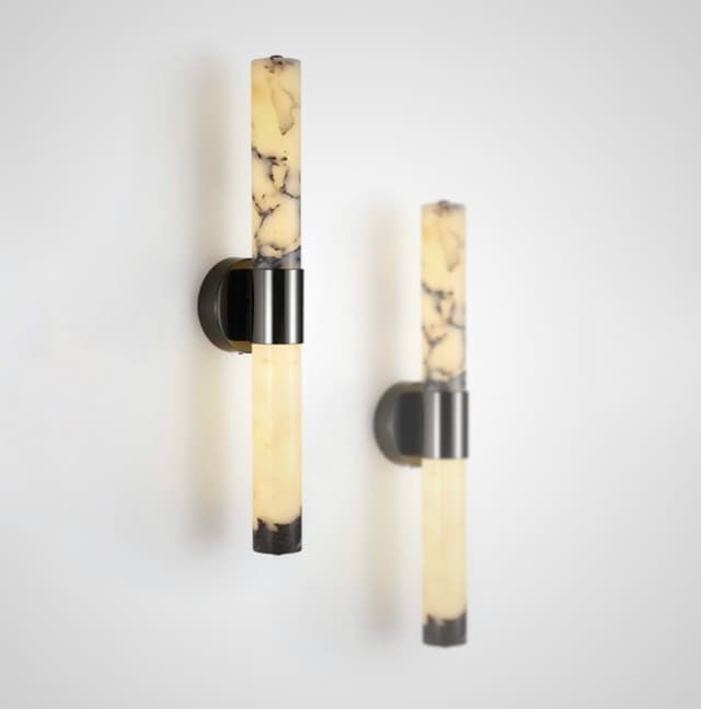 Настенные светодиодные светильники с корпусом из натурального мрамора с фактурой Bulgary Stone и черной лакированной фурнитурой