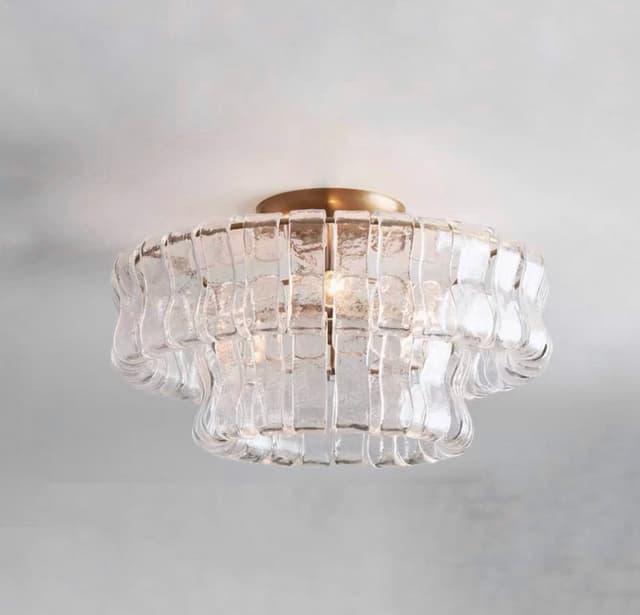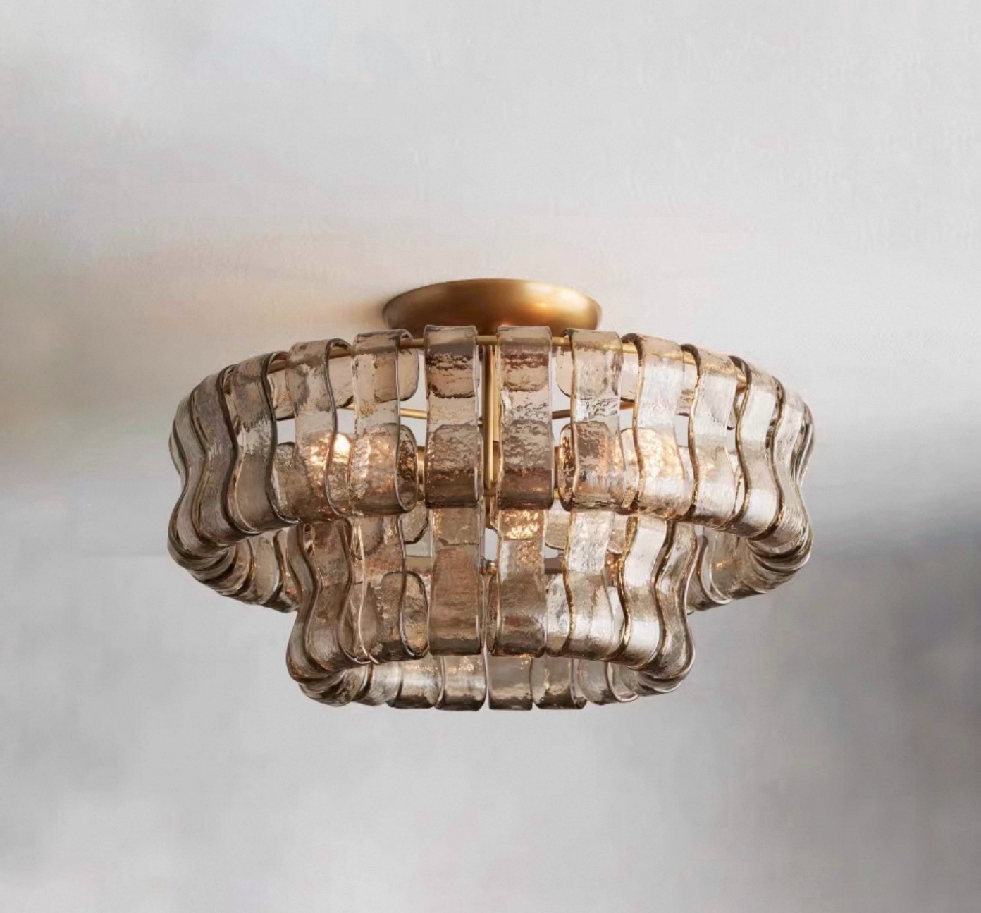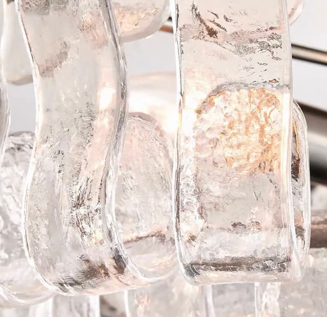 Серия потолочных люстр с абажуром из стеклянных подвесок в форме разомкнутых звеньев цепи